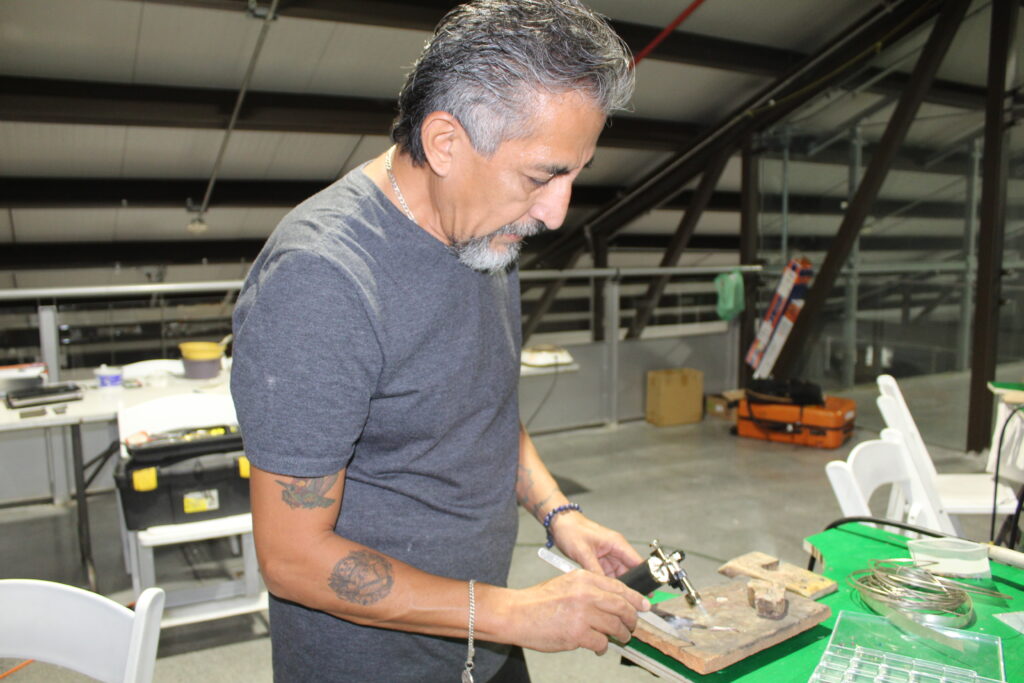Entre los expositores, Gilberto de la Rosa, orfebre del estudio XYLVR, compartió detalles sobre la elaboración artesanal de joyería mediante metales, mostrando la fusión entre arte, diseño y técnica.