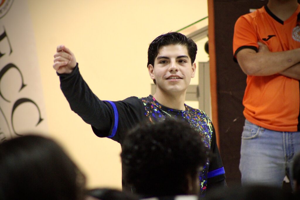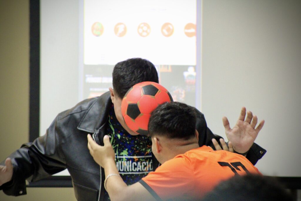 Durante la sesión, los estudiantes participaron en dinámicas de integración organizadas por el área, iniciando con una actividad de animación para medir la energía y entusiasmo de los grupos. Posteriormente, se realizó una trivia deportiva con preguntas relacionadas con Copas del Mundo, Balones de Oro y Fórmula 1, en la que compitieron representantes de cada salón.