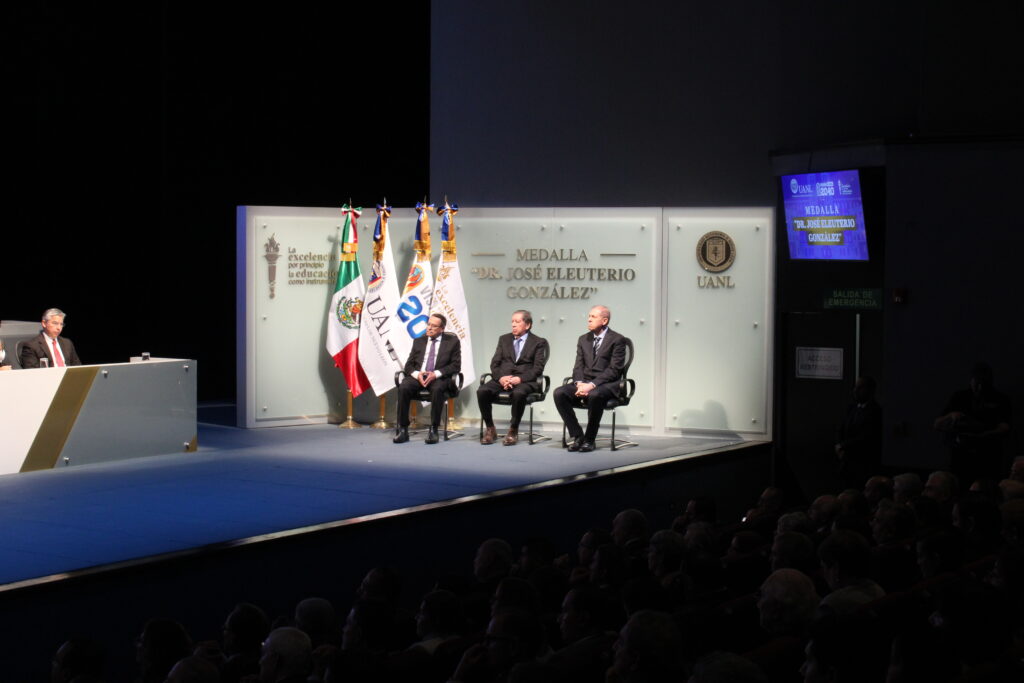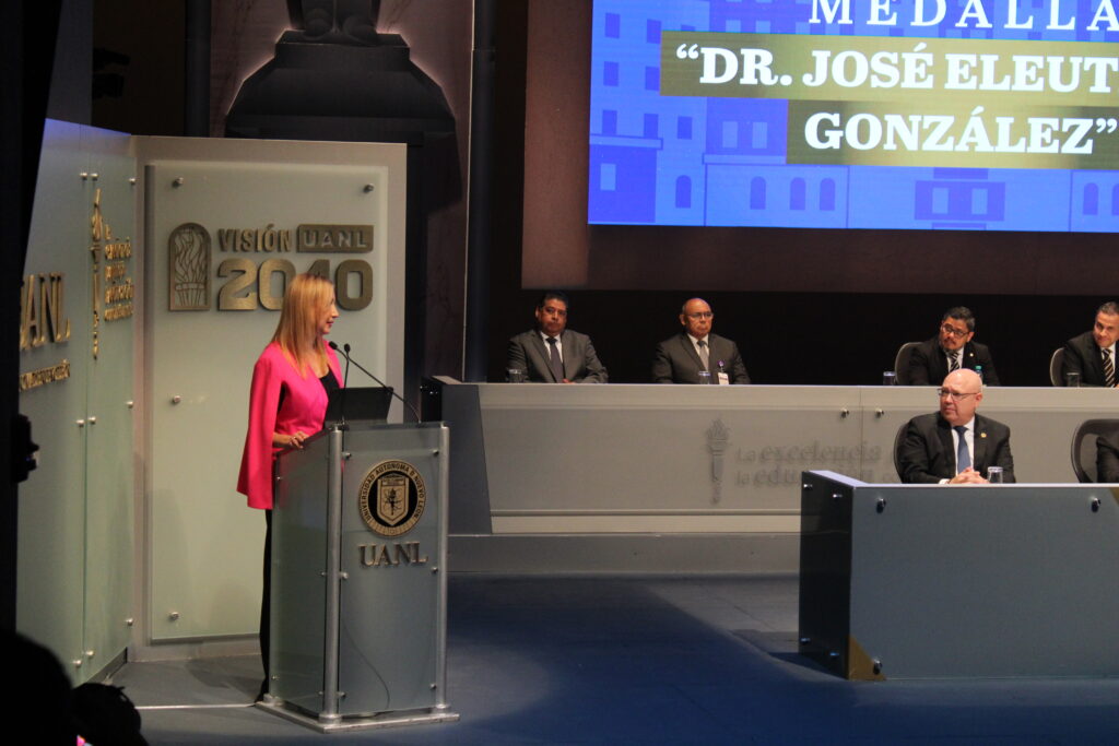 En el Teatro Universitario se llevó a cabo la sesión solemne de entrega de la Medalla “Dr. José Eleuterio González”, reconocimiento que otorga la Universidad Autónoma de Nuevo León (UANL) en el ámbito de la salud a quienes se han distinguido por su destacada labor y generar un impacto significativo que trasciende en la sociedad.