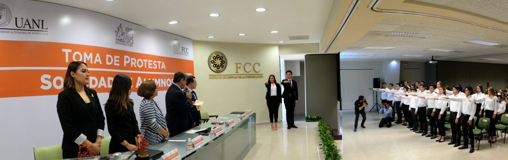 El presídium estuvo integrado por el Mtro. Garza Rivera, el Mtro. Luis Rolando Hernández Salazar, Director de Actividades Estudiantiles de la Universidad, la Dra. Moncerrat Arango Morales, Coordinadora de la Facultad de Ciencias de la Comunicación, las alumnas de la Mesa Directiva saliente, Fernanda Salas Treviño y Hassibe Morales Velázquez y los estudiantes previamente mencionados que encabezarán al grupo de trabajo entrante.