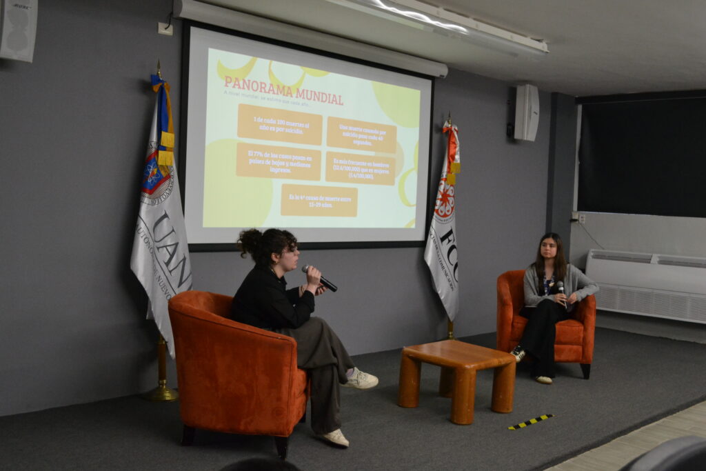 La conferencia fue impartida por Laura Gonzáles y Kenia Silva, quienes forman parte del personal del departamento de Psicopedagogía de la FCC, el pasado viernes 03 de Octubre en el Auditorio “Dr. Alfredo Piñeyro López” de la facultad, donde abordaron al tema de cómo identificar las conductas suicidas en nuestro círculo familiar y social.