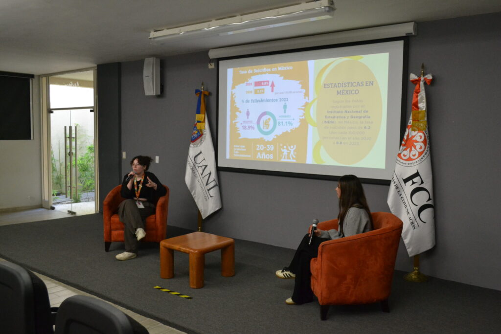 Según datos del INEGI, la tasa de suicidios pasó de 6.2% por cada 100, 000 personas a 6.8% en México, aunado a que los hombres son más propensos de recurrir a este acto en un 81.1% y las mujeres en un 18.9%. Así mismo, se destacó que el 77% de los casos son realizados por la población de bajos a escasos recursos, como medios de ayuda, las expositoras compartieron lo siguiente:
